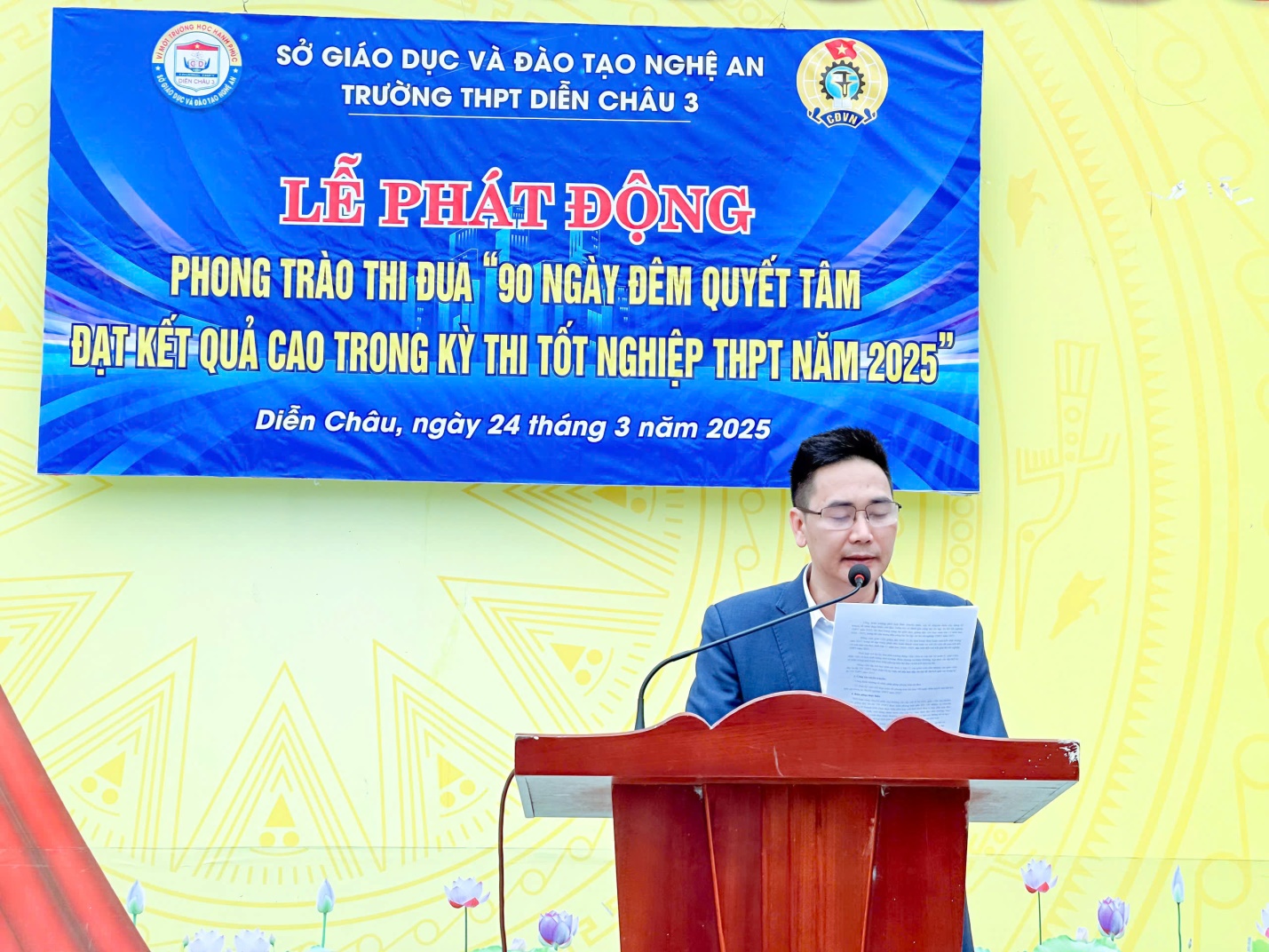 Sáng ngày 24/3/2025, trường THPT Diễn Châu 3 tổ chức Lễ phát động phong trào thi đua "90 ngày đêm quyết tâm đạt kết quả cao trong kỳ thi tốt nghiệp THPT 2025". Lễ phát động có sự tham gia của Ban Giám hiệu, hội cha mẹ học sinh, thầy cô và học sinh. Mục tiêu của phong trào là nâng cao chất lượng dạy học, đạt kết quả cao trong kỳ thi tốt nghiệp. Thầy trò nhà trường cam kết giữ vững truyền thống hiếu
