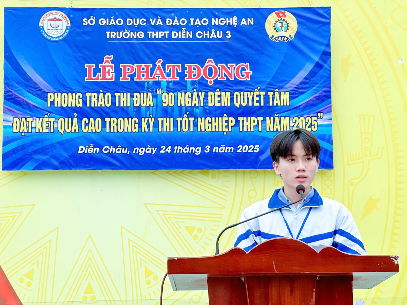 Sáng ngày 24/3/2025, trong không khí trang nghiêm và đầy quyết tâm, trường THPT Diễn Châu 3 đã long trọng tổ chức Lễ phát động phong trào thi đua "90 ngày đêm quyết tâm đạt kết quả cao trong kỳ thi tốt nghiệp THPT 2025". Đây không chỉ là một phong trào, mà là lời khẳng định về nỗ lực chinh phục đỉnh cao tri thức của thầy và trò nhà trường, đặc biệt trong bối cảnh năm đầu tiên kỳ thi tốt nghiệp THPT được tổ chức theo Chương trình giáo dục phổ thông mới.